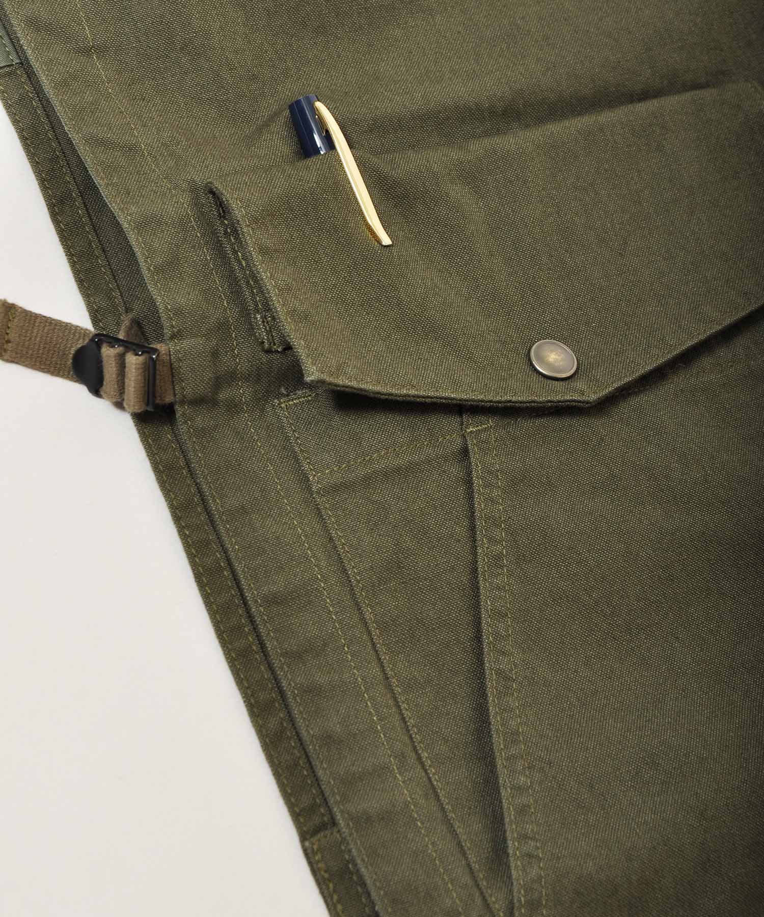 前身頃のポケットは二重ポケットになっており、雨ぶたが閉まっていても横から出し入れ可能で、雨ぶたはそのままペグ差しとしてもお使い頂けます。