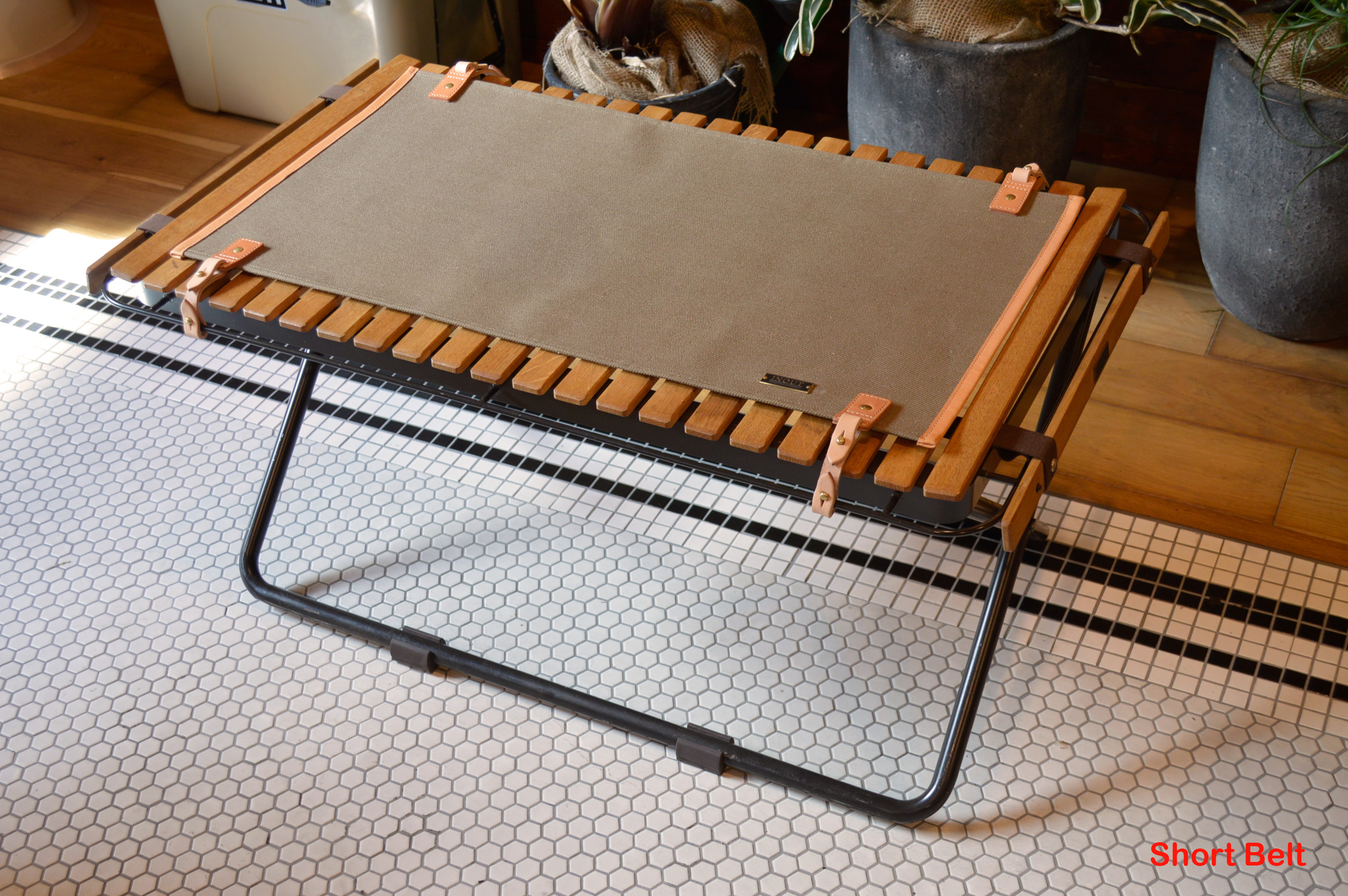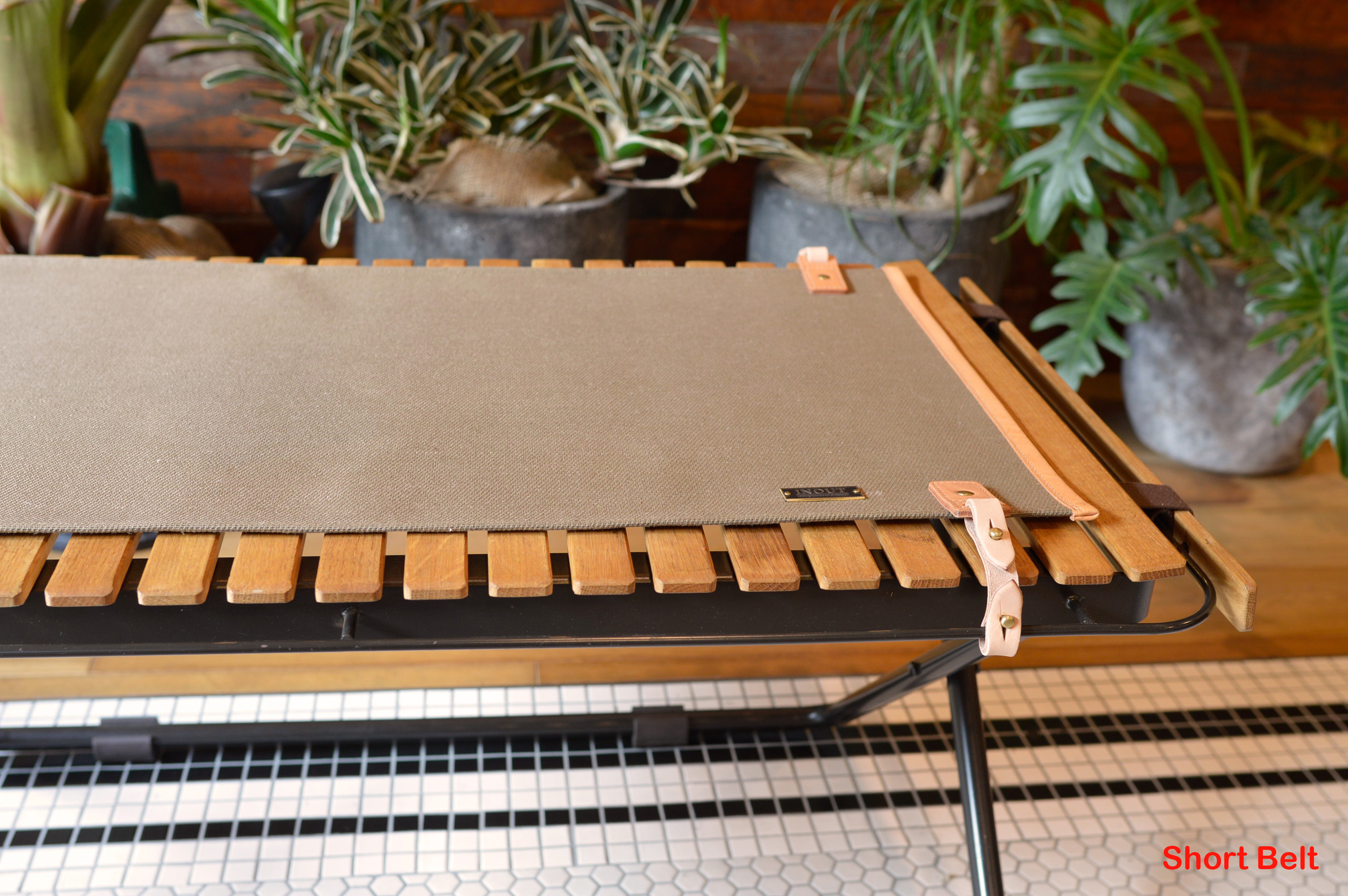 ロールトップテーブルの弱点である隙間を埋めるためにTurtle Table topが新登場です。 物が隙間から落ちてしまったりギアの脚が乗せられなかったりガス管の和染みが着いたりと言う事が解決出来ます。 また、Turtle Table topは細部にレザーを施す事によりTurtle Table をより高級感溢れる仕上がりにしてくれます。 ロングベルトをご使用頂くとアンダーストレージにジョイントできます。
