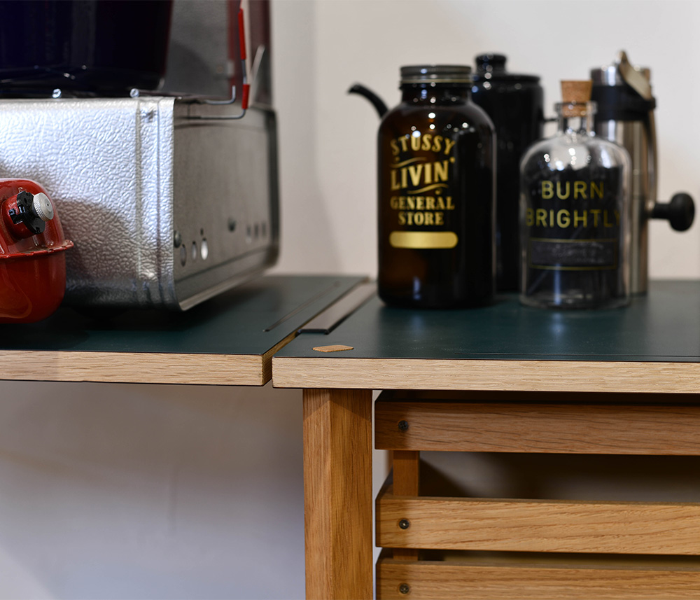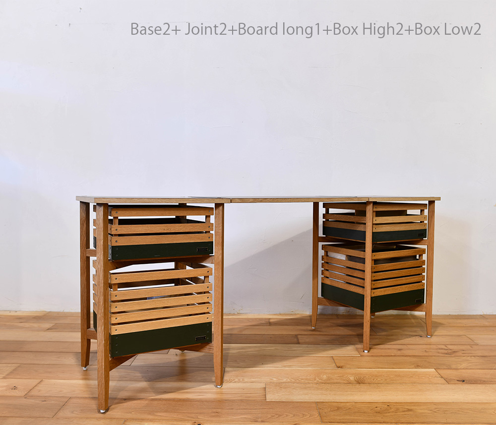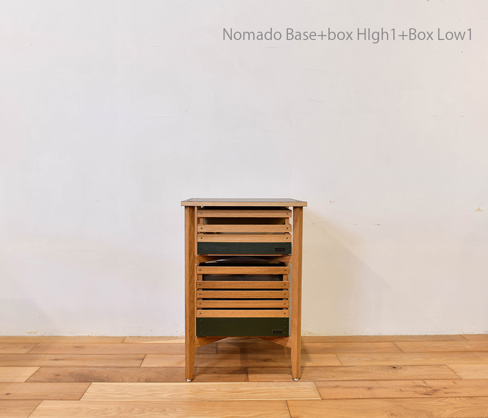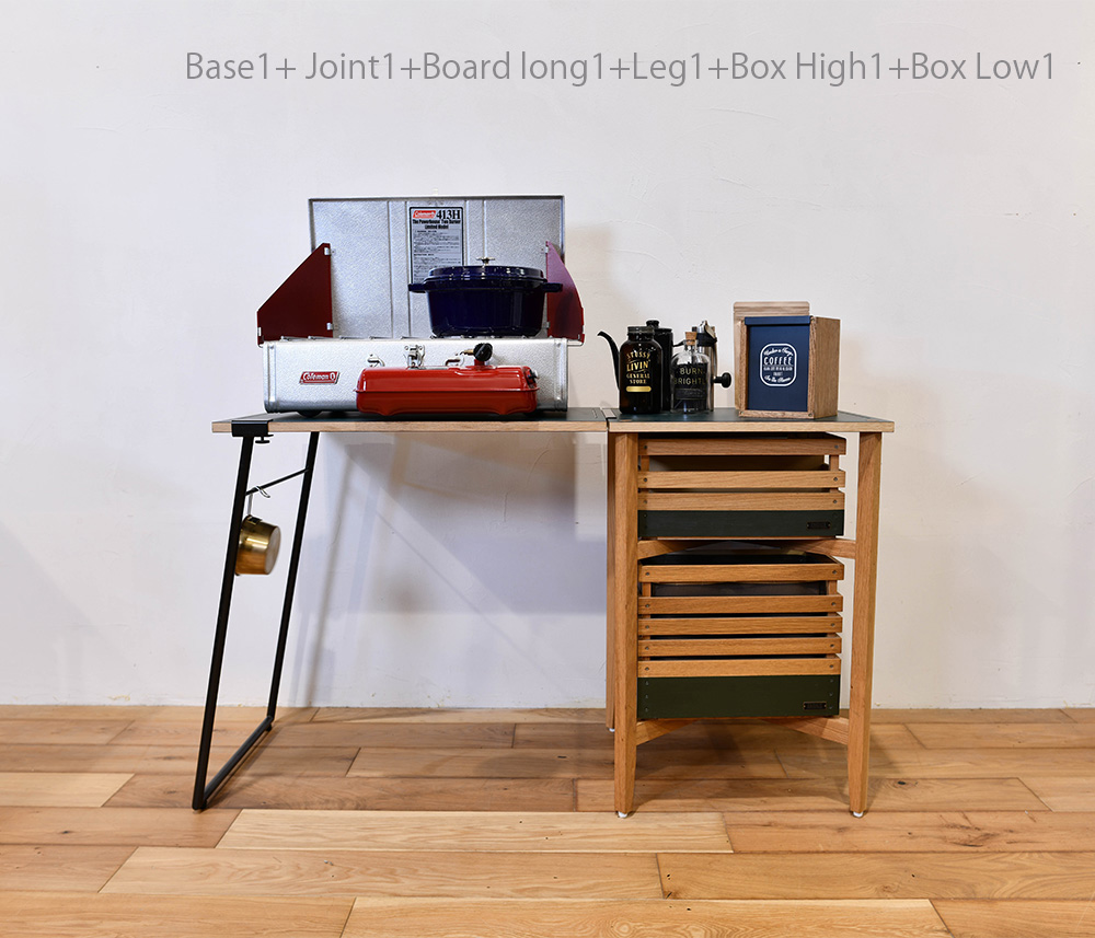旅するように暮らす遊牧民の様に どこに居てもデスクを持ち運べるをコンセプトにデザインしました。 家の中ではリモートワーク様のテーブルに アウトドアではキッチンに 拡張式ですのでライフスタイルに合わせてお選び頂けます。 お持ちのスタックボックスが収納出来ます。 ノマドベース (ハイタイプ×1ロータイプ×1) 天板も裏表で色を変えています。 今日のファッションに合わせて天板の色を選んでみてください。 Partsごとにご注文ください
