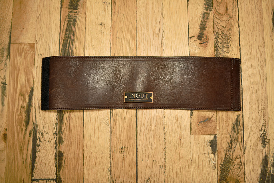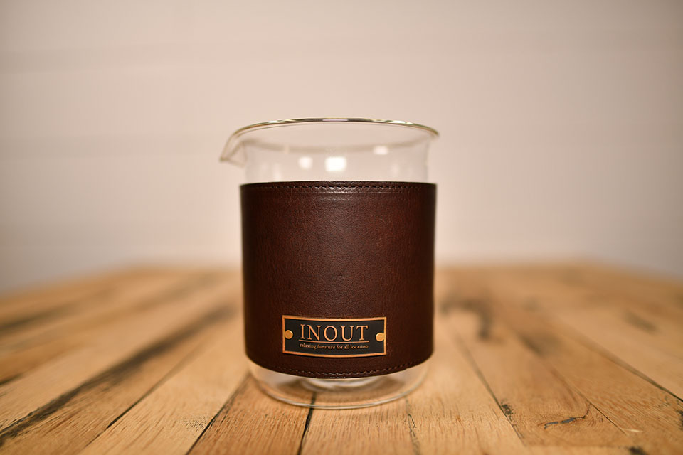 INOUT Original Beaker専用Lather bellyband bellybandとは腹巻きと言う意味で、INOUT Original Beakerに 巻いた姿が腹巻きの様だからその名がつきました。 耐熱ビーカーですので熱いコーヒーをそのままビーカーで飲むなんてこともありだと思います。 裏面には滑り止め加工をしていますのでずり落ちてくる心配はありません。