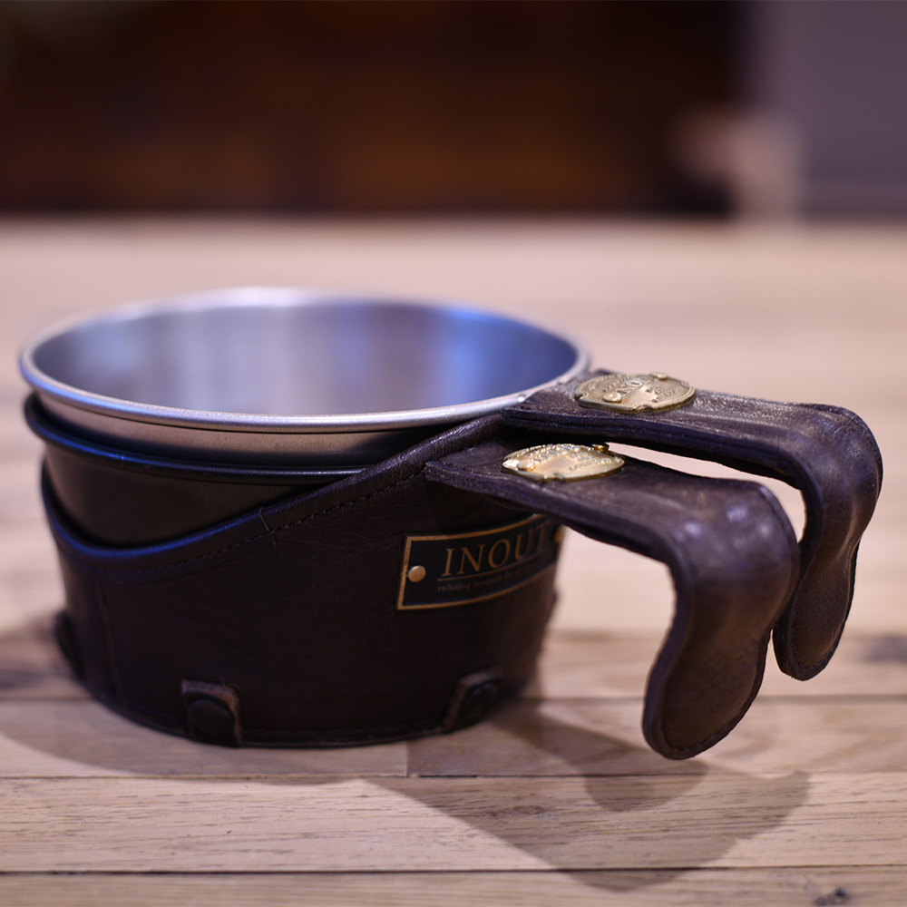 ハンドメイドで作るINOUT「Original Sierra Cup」専用のレザーカバー Sierra Cup Leather caseとSierra Cup Leather vestと同じレザーで製作。 真鍮のメタルタグでクラシックスタイルに。 日本製