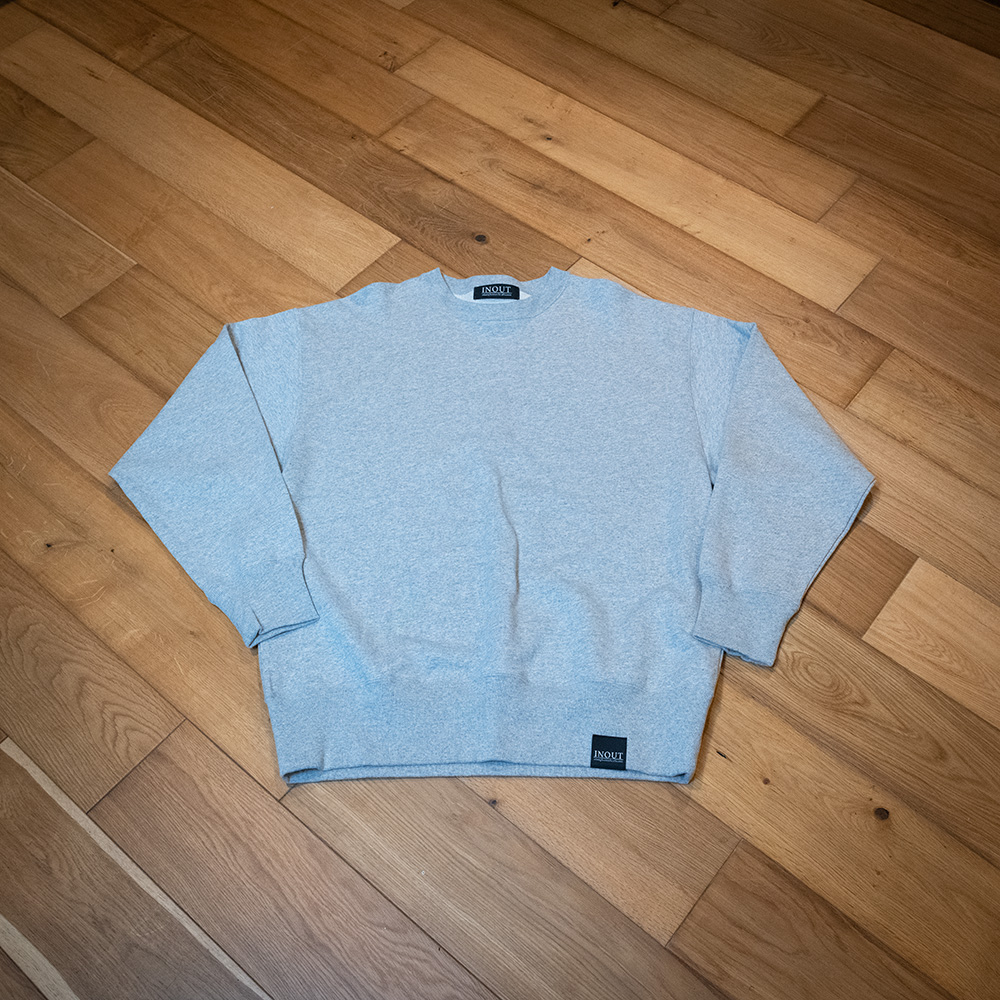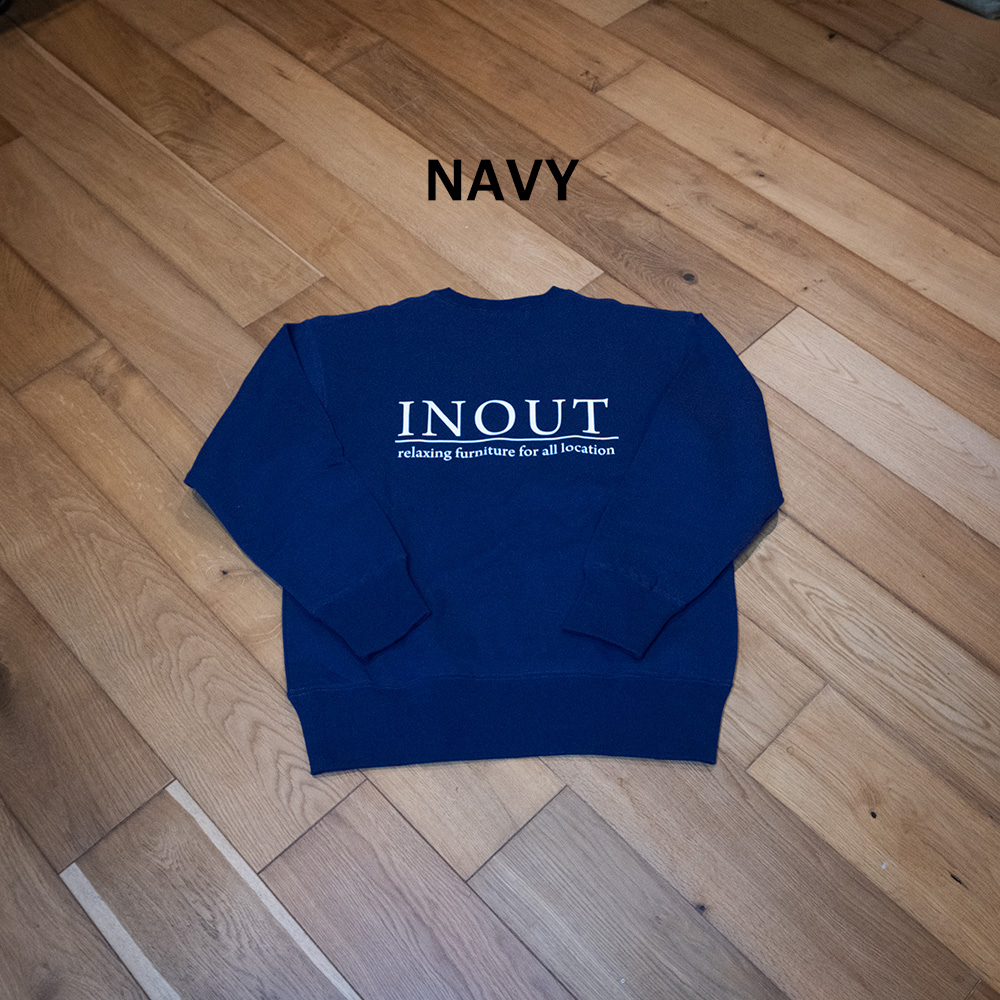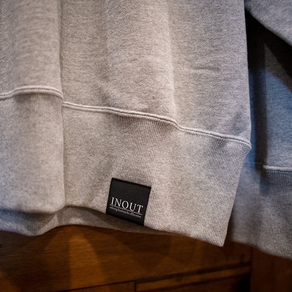 コットン100%の裏パイル素材を採用した 13.5ozクールネックスエット。 まだまだ夜になると肌寒くなります。 そんなときにさっと羽織るとちょうどいい厚さ感です。 背面にはINOUT official LOGOを大きくプリントしています。 ボリューム感のあるボクシーなシルエットが最大の特徴で縫い目に二本針またぎステッチを施すことにより、多少のことではヘタレないヘビーデューティーな仕上がりに。Tシャツ同様に、詰まり気味のネックもポイントです。普通だけれども新鮮な、末長く付き合えるスタンダードといえるスウェットです。