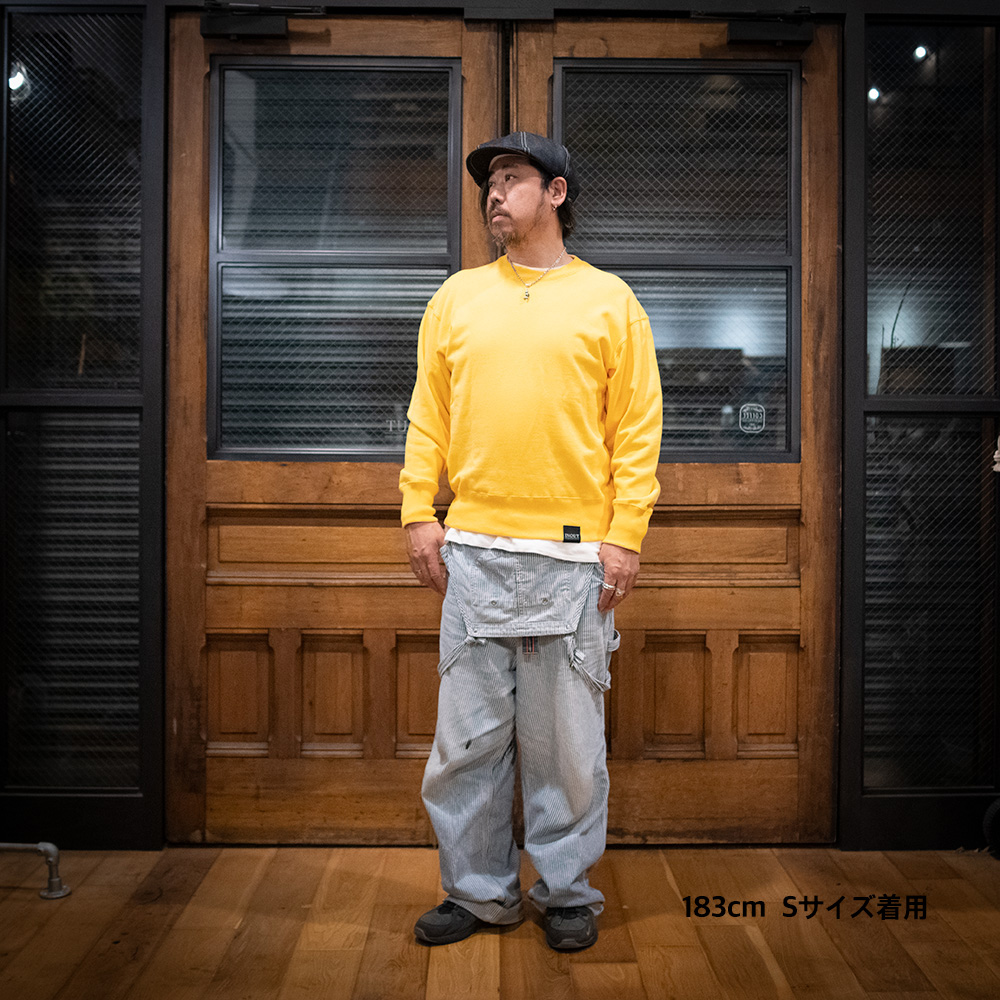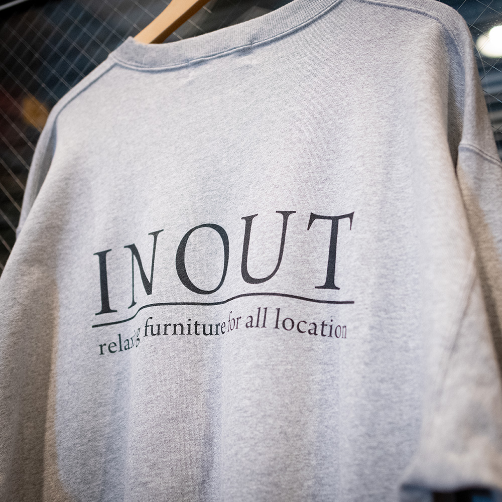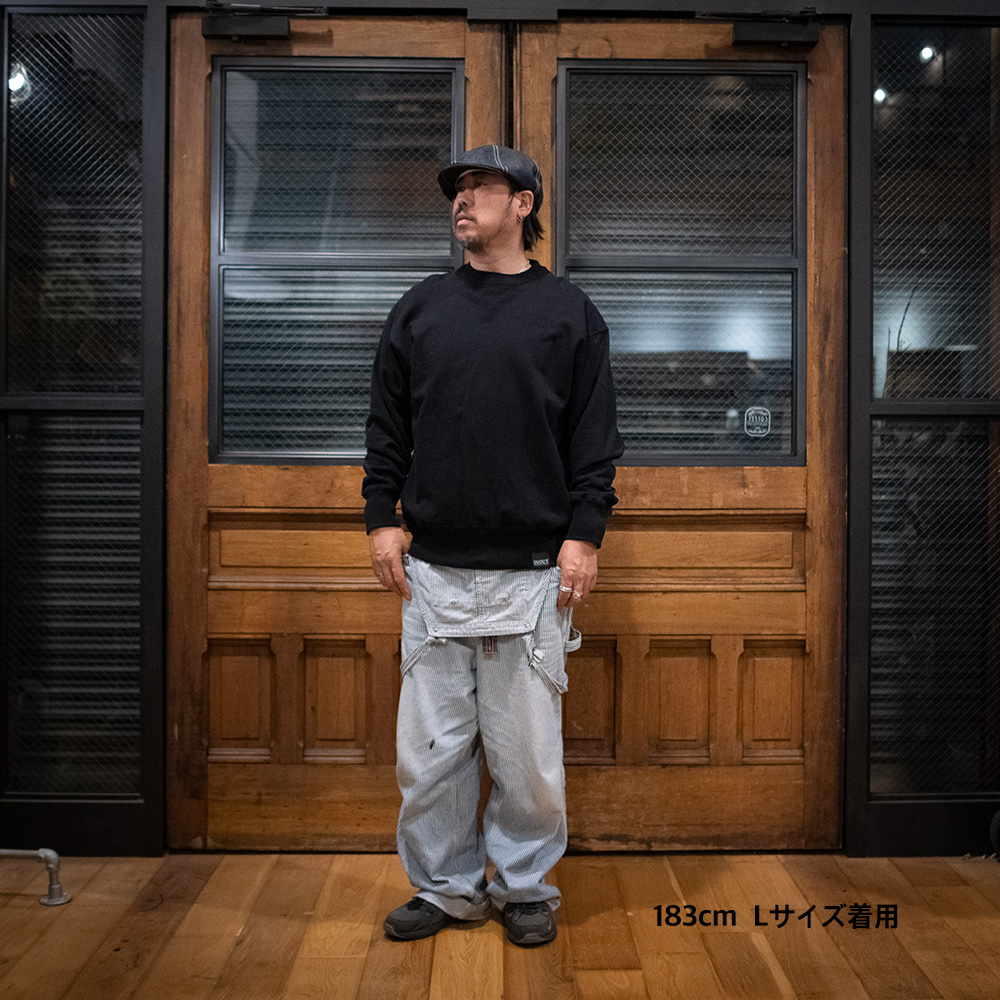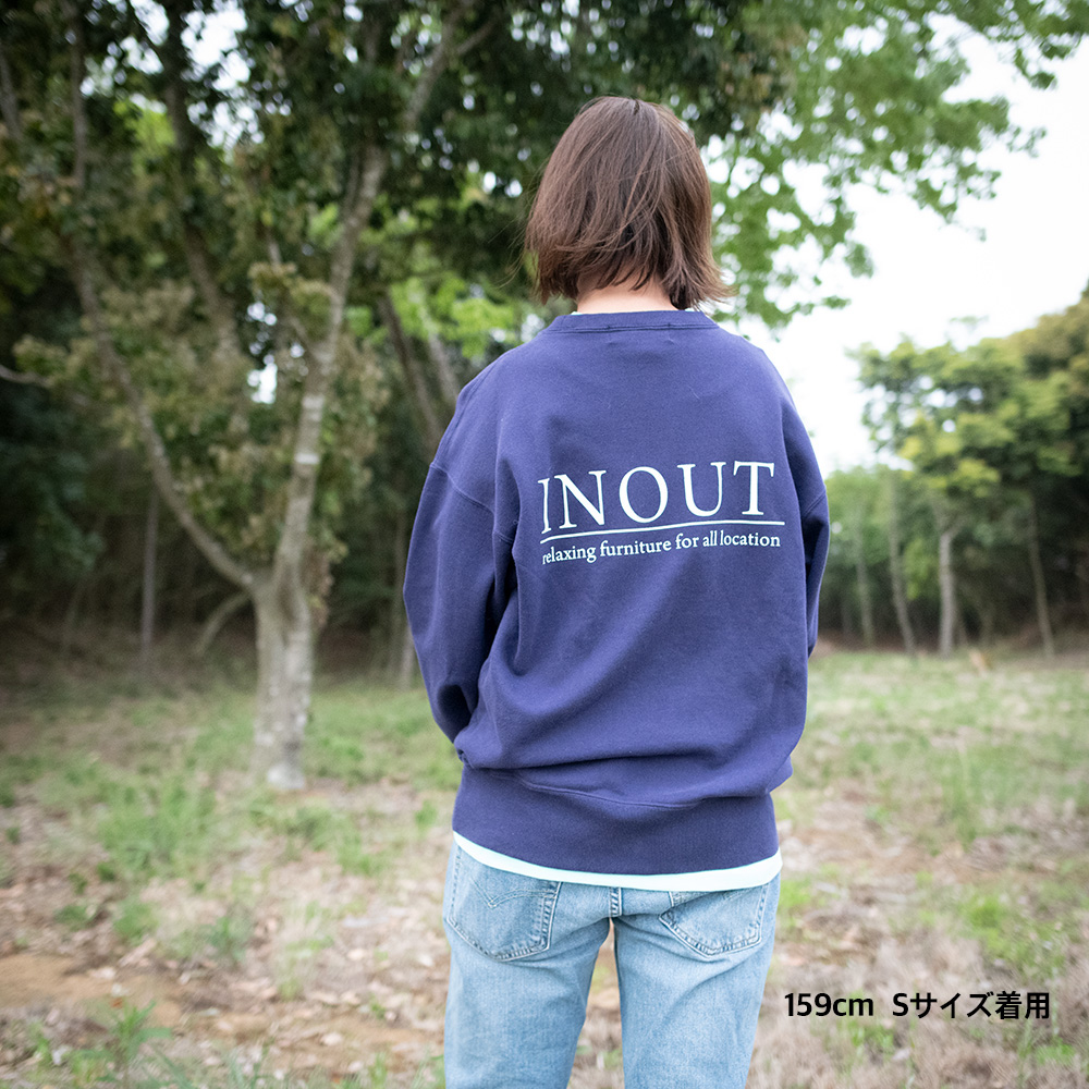 コットン100%の裏パイル素材を採用した 13.5ozクールネックスエット。 まだまだ夜になると肌寒くなります。 そんなときにさっと羽織るとちょうどいい厚さ感です。 背面にはINOUT official LOGOを大きくプリントしています。 ボリューム感のあるボクシーなシルエットが最大の特徴で縫い目に二本針またぎステッチを施すことにより、多少のことではヘタレないヘビーデューティーな仕上がりに。Tシャツ同様に、詰まり気味のネックもポイントです。普通だけれども新鮮な、末長く付き合えるスタンダードといえるスウェットです。