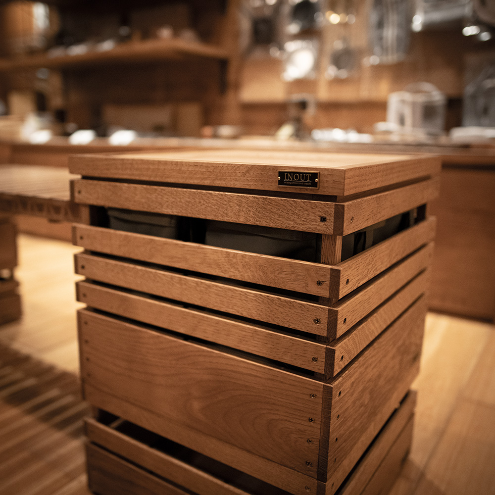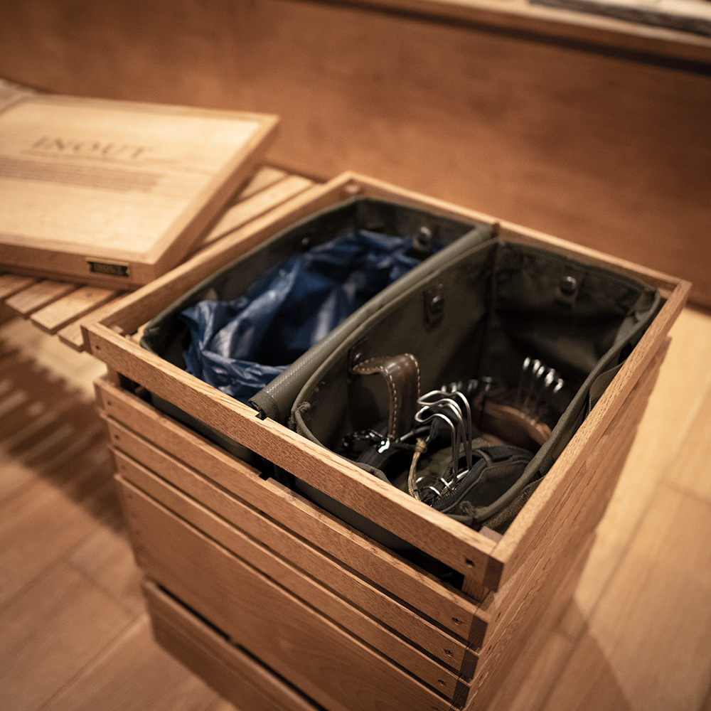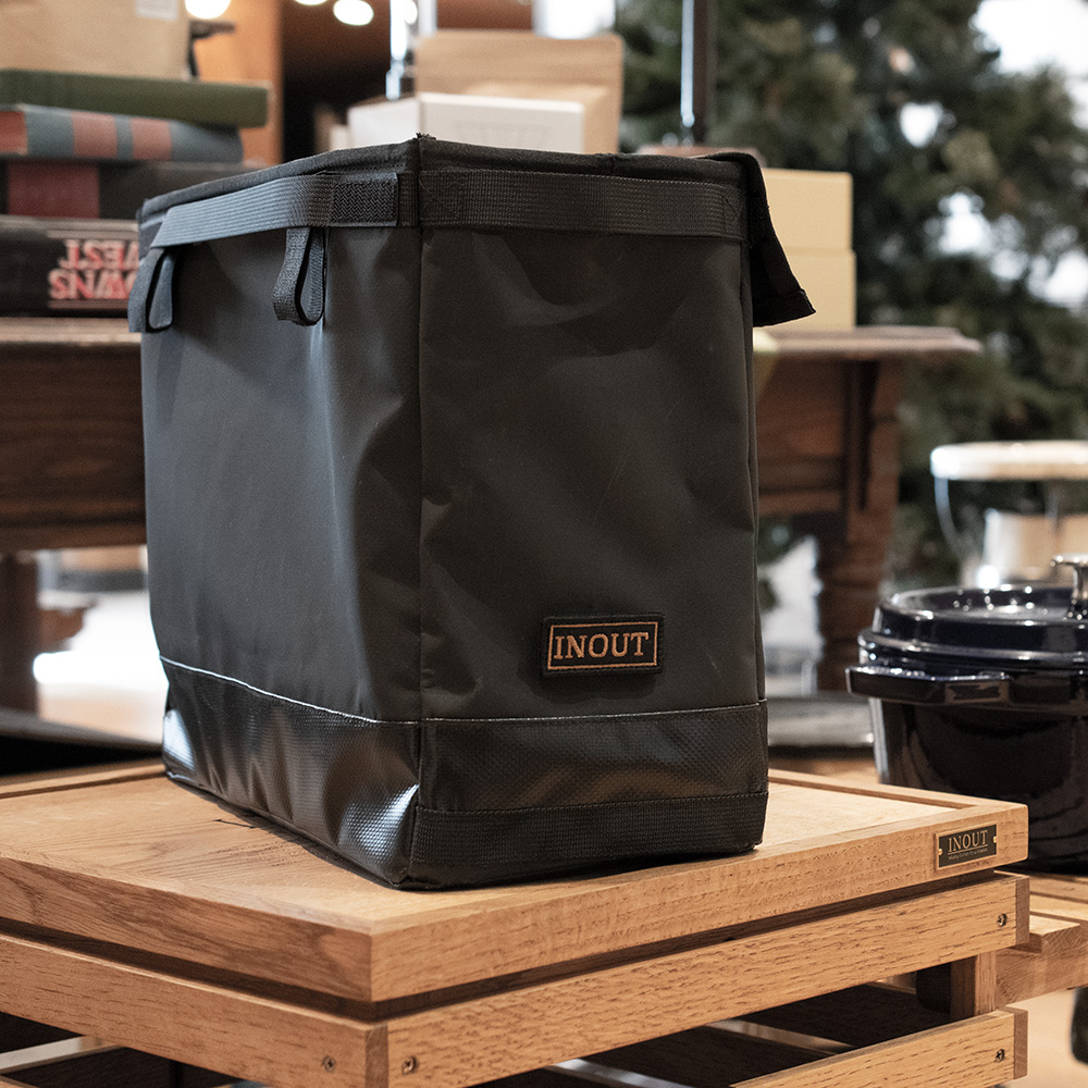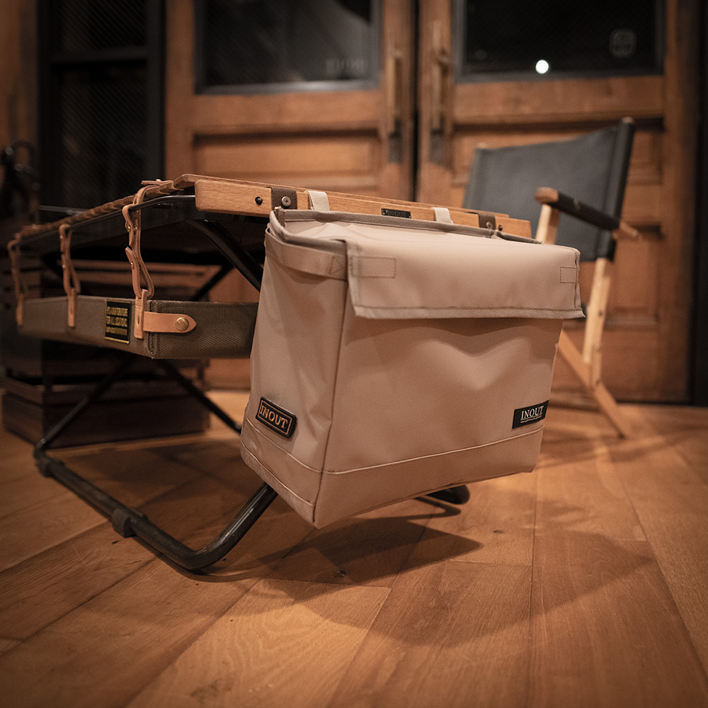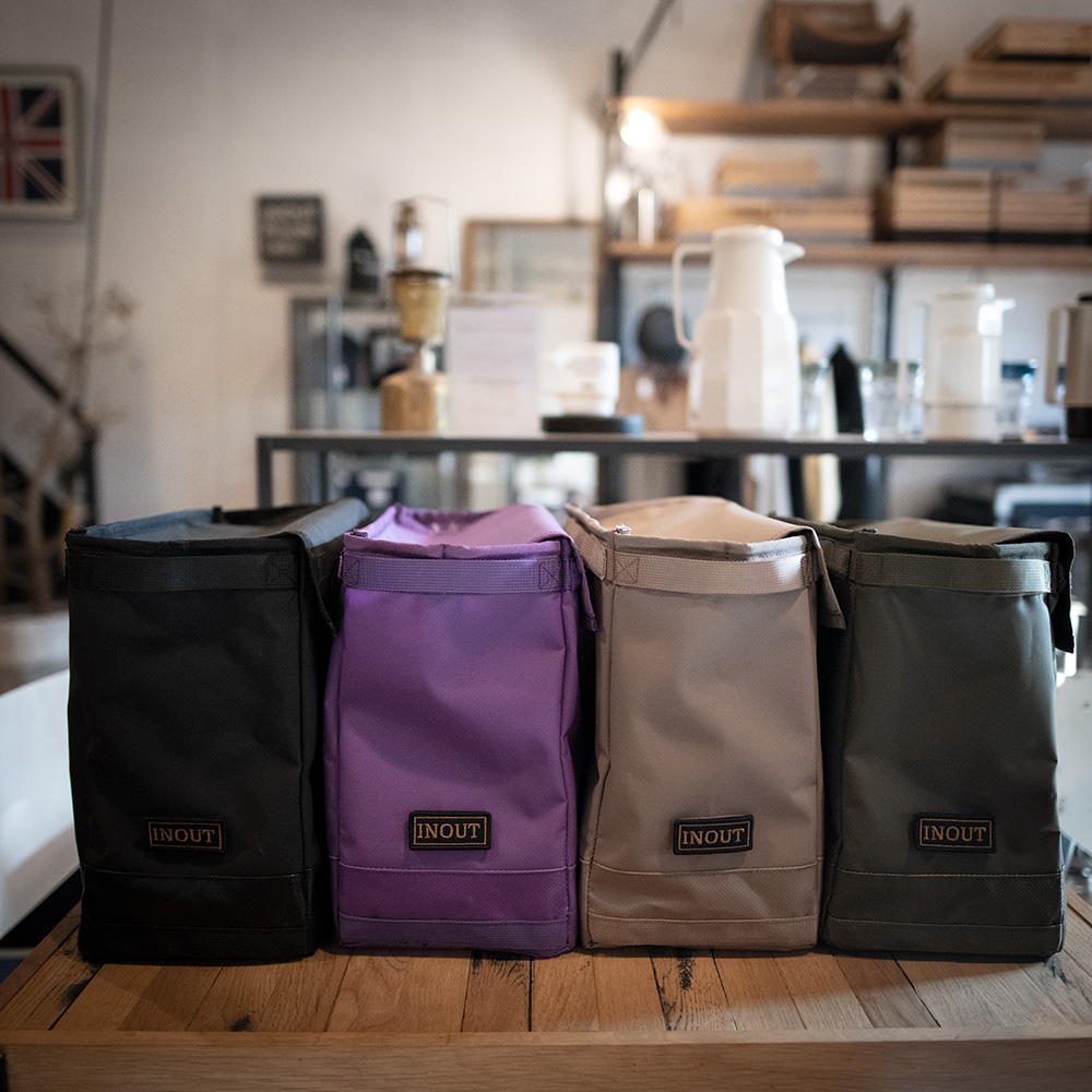 ターポリン素材で作られた多目的ボックス。丈夫で防水性に優れているため、様々な用途に活用できます。 stack box highタイプに合わせて作られていて2個収納できそのままboxから出しても自立しています。stack boxの中身が隙間から見えてしまう悩みも解決できます。 ギアや食材を収納して持ち運ぶのはもちろん内部にスナップボタンを装備しているのでゴミ袋を取り付けてコミ箱としても利用可能です。 また、サイドにベルクロを装着しているのでいろんな場所に取り付けもできます。自分専用のストレージとしてもちょうどいいサイズです。 ターポリンの裏面をあえて使う事によって安っぽくなくスタイリッシュなデザインとなっています。