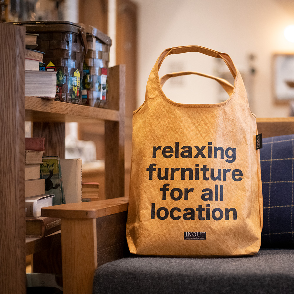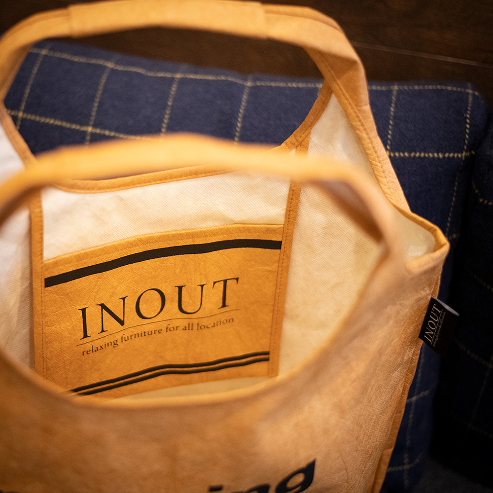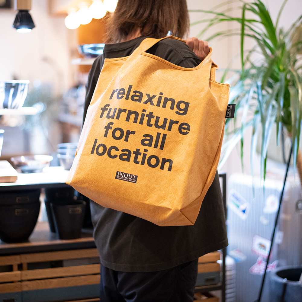 表面にINOUTのフィロソフィーを印刷したカッコかわいいバックです。