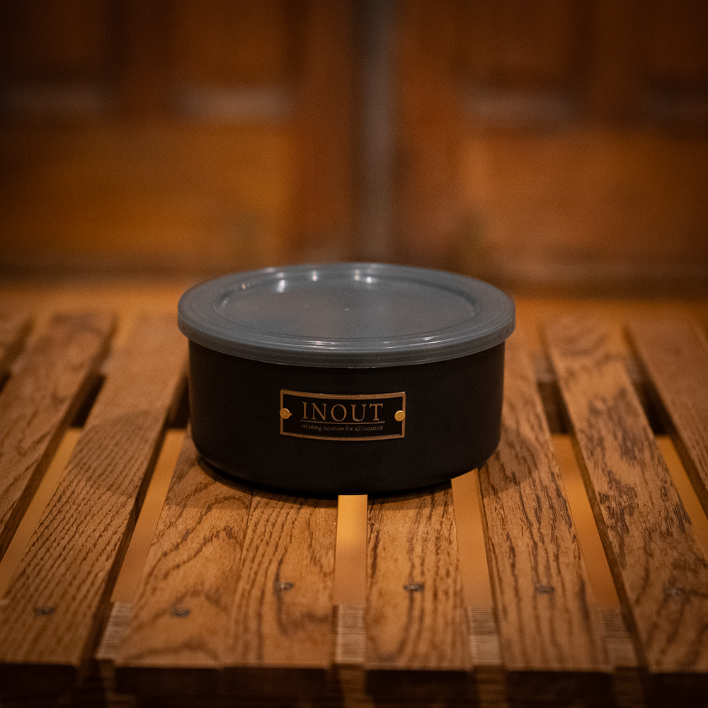 105φ&120φのBlack canister 既存の105φcanisterと新作の120φcanisterがBlackの蓋での登場 半透明の黒い蓋はラグジュアリーな雰囲気を醸し出します。 食品以外にも無くしそうな小さな物など収納としても便利です。 105φのcanisterはINOUTのシェラカップにちょうど入るので持ち運びにも便利。