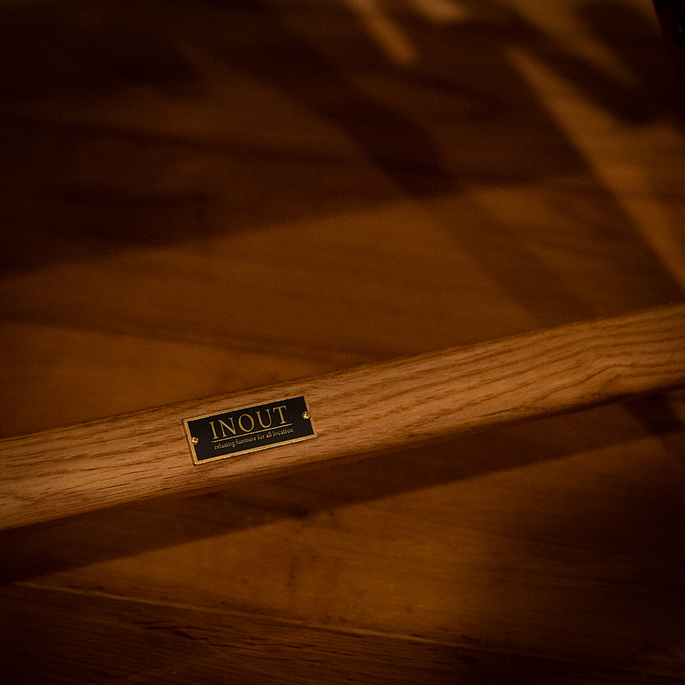 Designed for long, comfortable sitting, the seat height is carefully tuned to reduce fatigue, and the cross-woven upholstery keeps sagging to a minimum. The fabric edge has been upgraded from canvas to leather piping for a more premium feel, and an INOUT metal plate is mounted on the back leg. We use Kurashiki Canvas, known for its toughness and low stretch, so you can enjoy the chair for years.