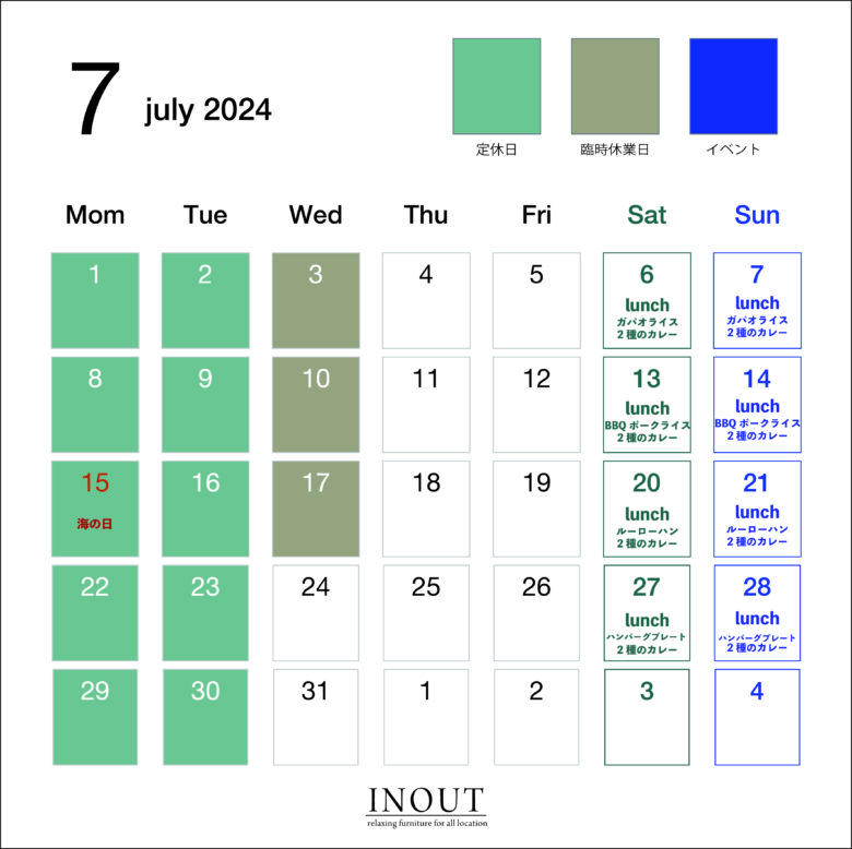 7月の臨時休業は3日10日17日となっておりますのでお気を付けください。